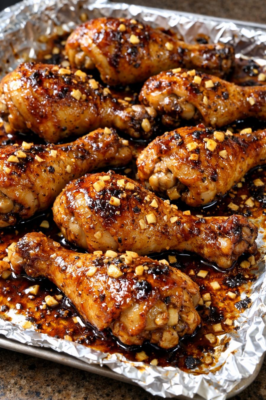 During the last 5–10 minutes of baking, spoon some of the thickened pan juices over the drumsticks to deepen the color and glaze. If you like a little char, you can switch the oven to broil for 2–3 minutes, watching closely so they don’t burn.