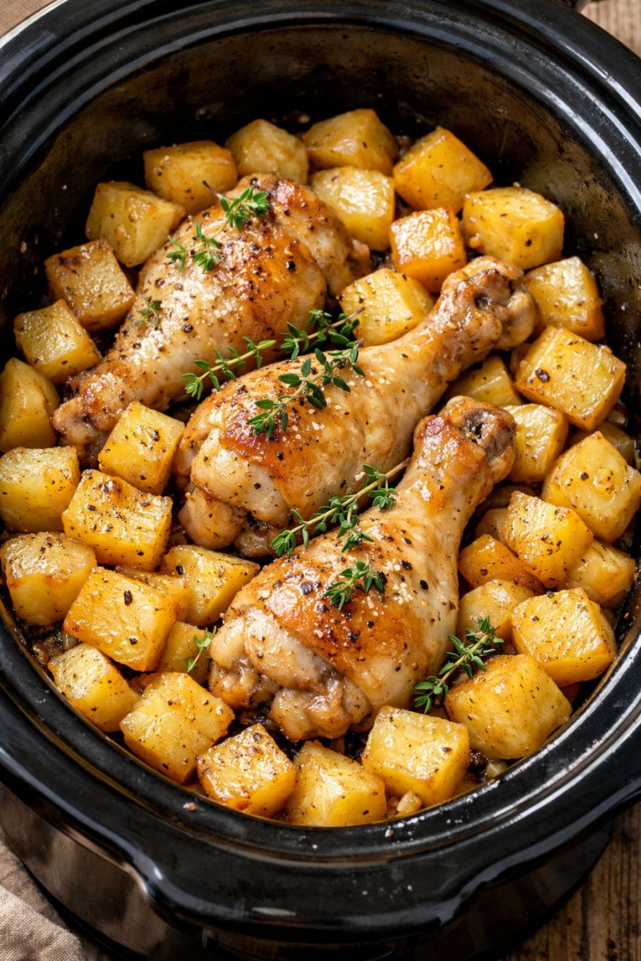 This slow cooker 5-ingredient chicken and turnips is my humble, default supper for the nights when I stare into the fridge and think, “I have no idea what to make.” It’s loosely inspired by Depression-era cooking: simple pantry staples, inexpensive cuts of meat, and root vegetables that stretch a meal without much fuss. You literally toss cubed turnips over raw chicken legs, add three basic ingredients, flip on the slow cooker, and walk away. By dinnertime, the chicken is fall-off-the-bone tender, the turnips are silky and savory, and the whole house smells like you put in way more effort than you actually did.