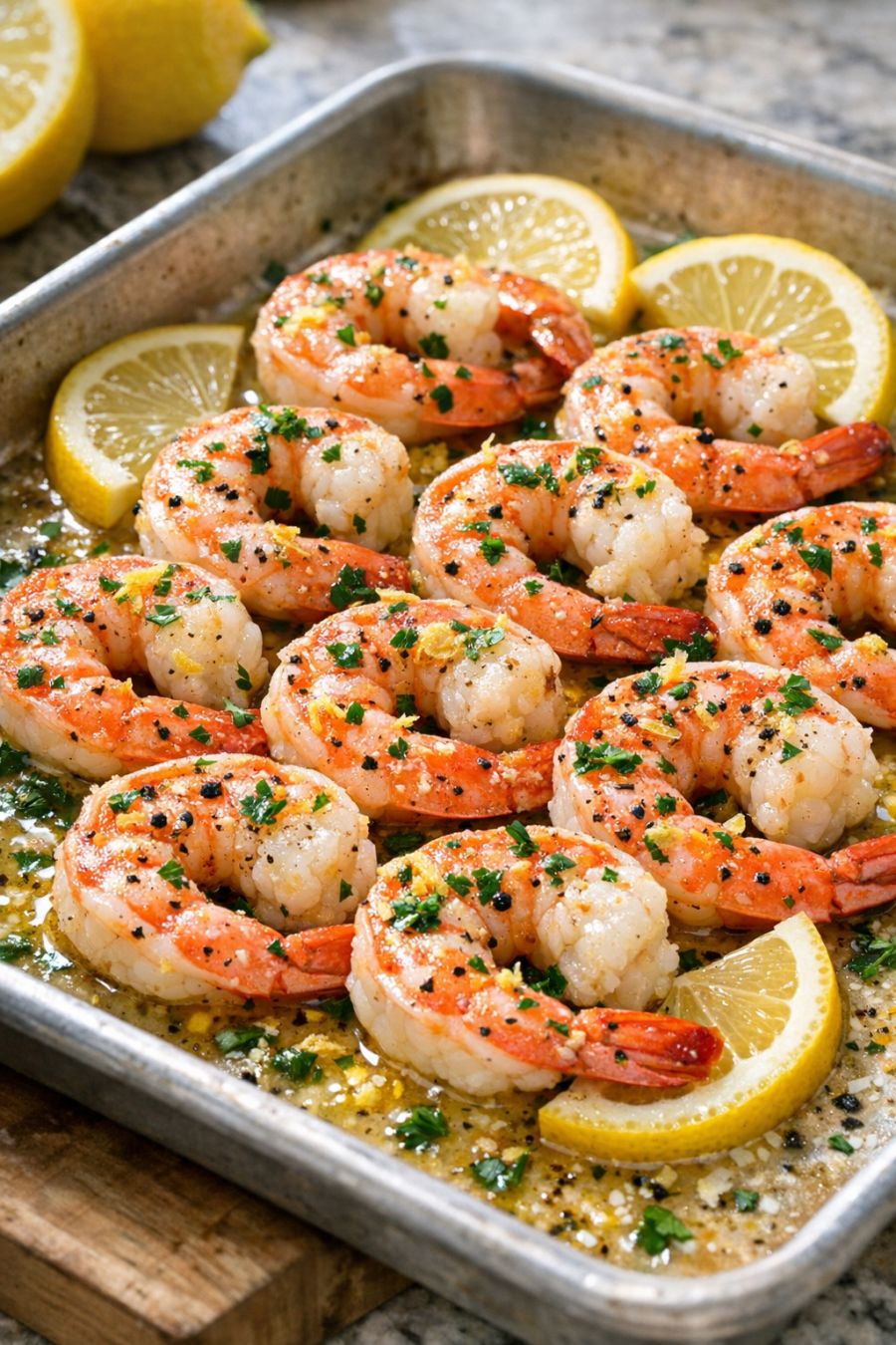For kids who like milder flavors, you can skip the lemon zest and just use the juice, then offer extra lemon wedges at the table for the grown-ups. If your family enjoys garlic, tuck 2–3 minced garlic cloves or 1 teaspoon of garlic powder around the shrimp before baking for a cozy, garlicky twist. For a bit of color and a spring garden feel, scatter a handful of thinly sliced green onions or chopped fresh parsley over the shrimp right after they come out of the oven. To make it a full one-pan meal, add a single layer of thinly sliced zucchini, asparagus pieces, or halved cherry tomatoes to the pan under the shrimp; they’ll roast in the lemon-butter drippings. If you’re cooking for a crowd, use two sheet pans so the shrimp roast instead of steam. Leftovers are great tossed into pasta, folded into tacos, or chilled and served over salad the next day.