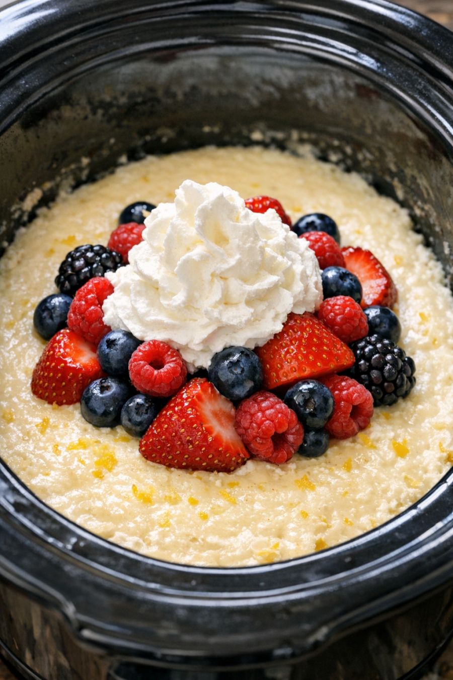 Turn off the slow cooker and let the dessert sit, uncovered, for about 10 to 15 minutes to cool slightly and thicken a bit more. This rest time helps it set up so it’s extra creamy.