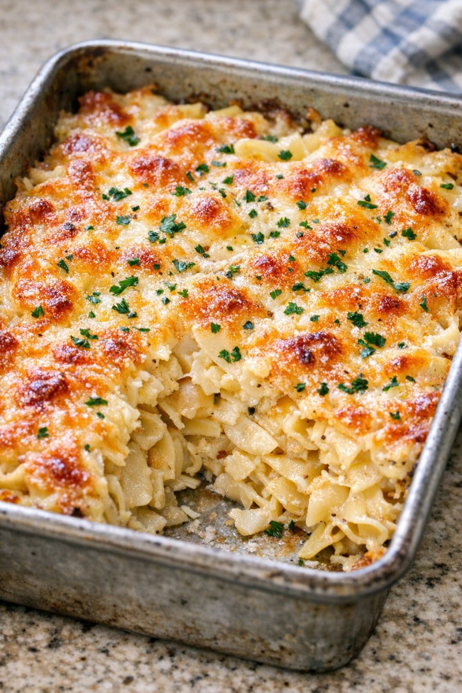 This is my no-brainer Amish-style parsnip noodle bake, the kind of comforting dish I can throw together after work without even thinking. It’s inspired by simple Amish casseroles that rely on pantry basics and gentle oven time instead of fussy steps. You literally layer dry medium egg noodles and diced raw parsnips in a metal baking pan, pour over a quick seasoned milk-and-butter mixture, cover it with a blanket of shredded cheese, and let the oven do the rest. It’s cozy, mildly sweet from the parsnips, and feels like something a grandma in the Midwest has been making forever.