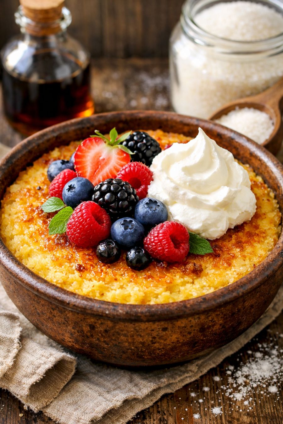 Spoon the warm cornmeal pudding into bowls and serve as-is, or top with berries, whipped cream, or a light dusting of powdered sugar. Store any leftovers in a covered container in the refrigerator for up to 3 days, and reheat gently in the microwave or on LOW in the slow cooker with a splash of milk.