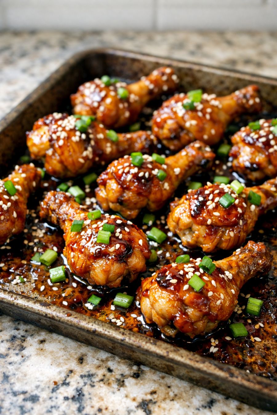 Let the chicken rest on the baking sheet for 5 minutes to allow the juices to settle and the glaze to thicken slightly. Transfer to a serving platter, spooning any extra pan sauce over the top, and serve hot.