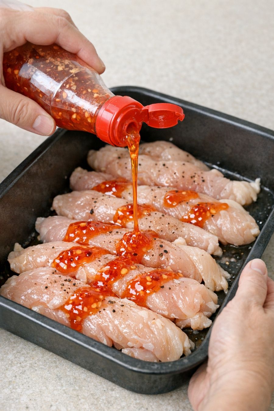 Pour cream of mushroom soup and these 4 ingredients over raw chicken thighs into a baking dish for a comforting meal people always return to