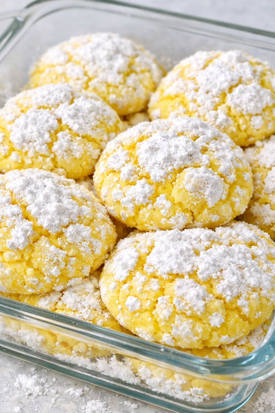 My sister bakes this bright citrusy dessert to welcome the warmer weather. You only need 4 ingredients to get perfectly chewy centers and crinkly powdered sugar tops that brighten up the whole dessert